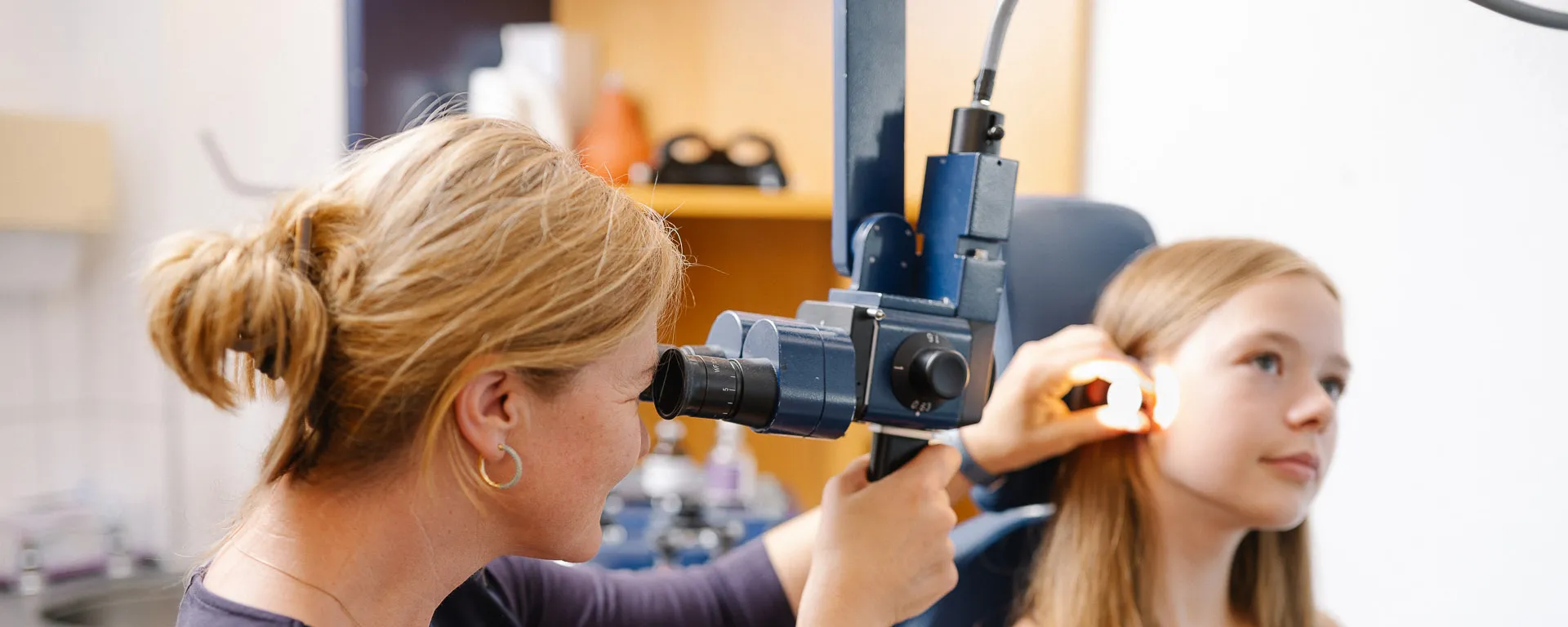 Untersuchung, Säuberung und Behandlung der Ohren unter Vergößerung mit dem Ohrmikroskop ...
